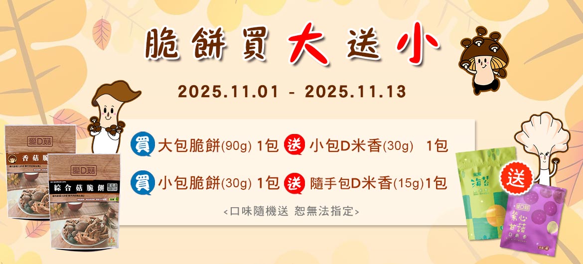 愛D菇品牌官網 - 香菇餅乾|D米香|乾香菇|乾木耳|香菇禮盒|脆餅禮盒