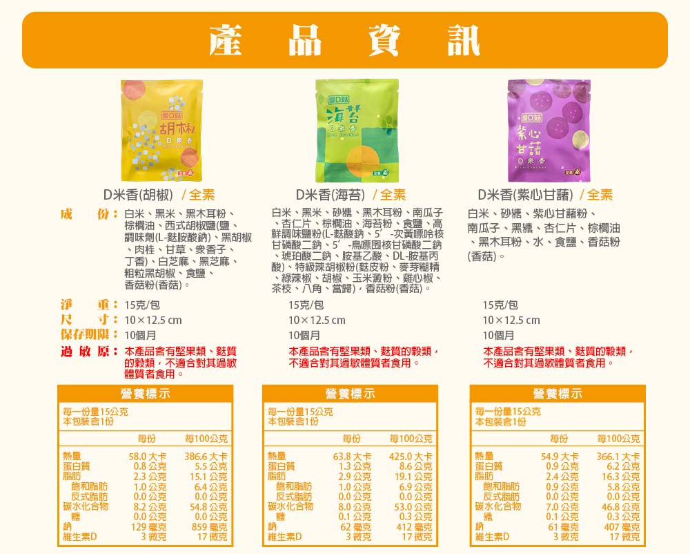 D米香(胡椒/海苔/紫心甘藷)各1包
