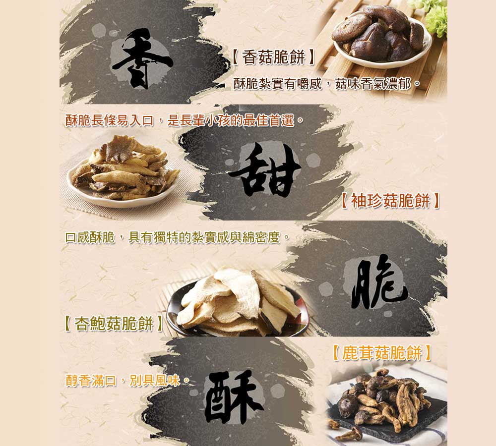 使用了全台唯一先進的光照技術,利用UVB讓菇菇們產生了維生素D,愛吃零嘴的您,也也能夠吃得健康。