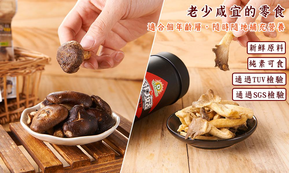 使用了全台唯一先進的光照技術,利用UVB讓菇菇們產生了維生素D,愛吃零嘴的您,也能夠吃得健康。
